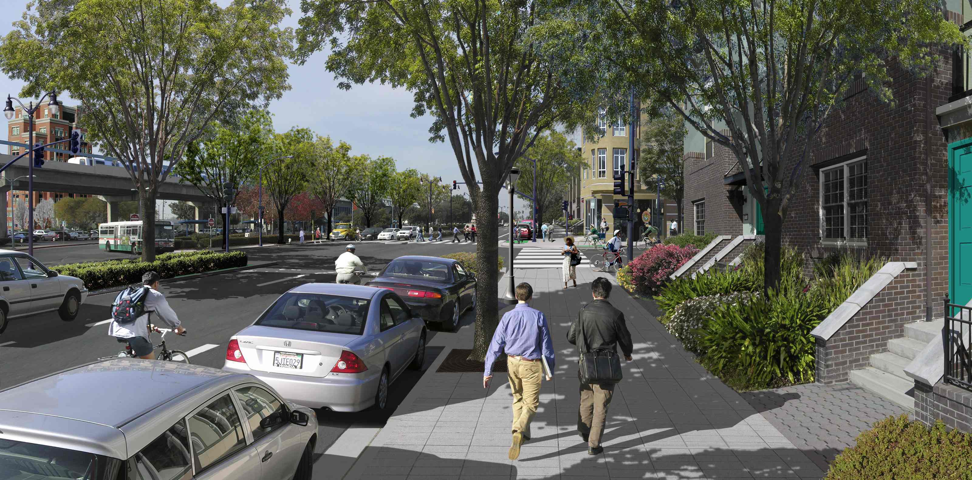 New San Leandro Chamber of Commerce CEO David Johnson, who spent many years working on Oakland economic development, praised the plan for its anticipation of a public shift to transit, for not overdoing the retail component in a way that competes with the existing 14th Street corridor, and for leaving pleasant residential neighborhoods alone.